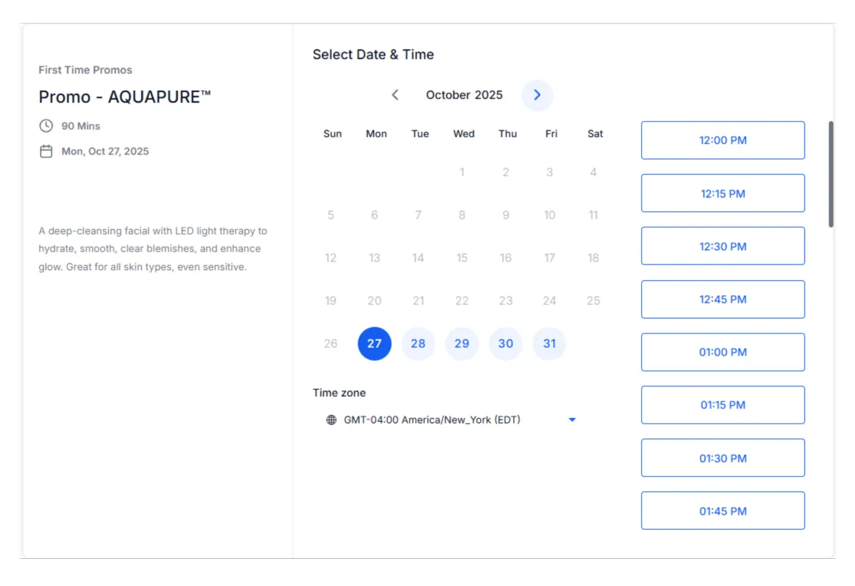 Please arrive with a clean face if possible. Avoid using strong exfoliants, acids, or retinol for at least 48 hours before your appointment.